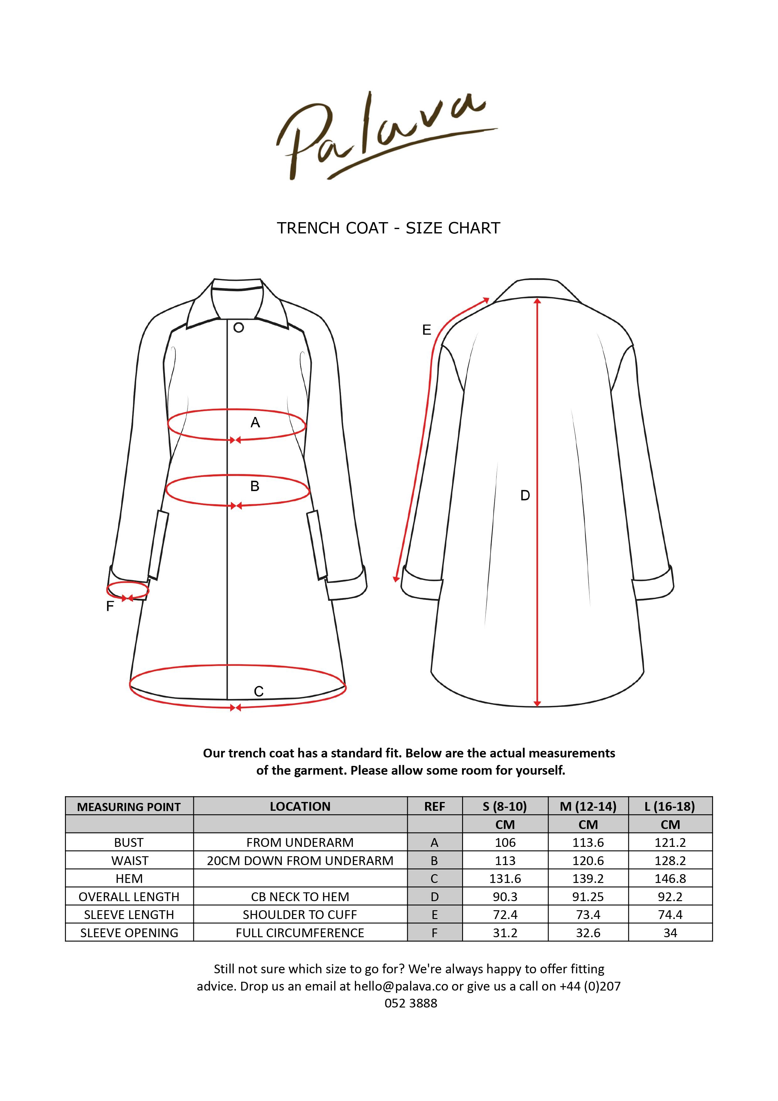 Description & Certifications: Getting you home and dry, our waxed cotton trench coats are made from an outer layer that is 100% Cotton and finished with a new innovative wax blend that is biodegradable. The lining on the inside is one of our very own all-natural Palava prints.