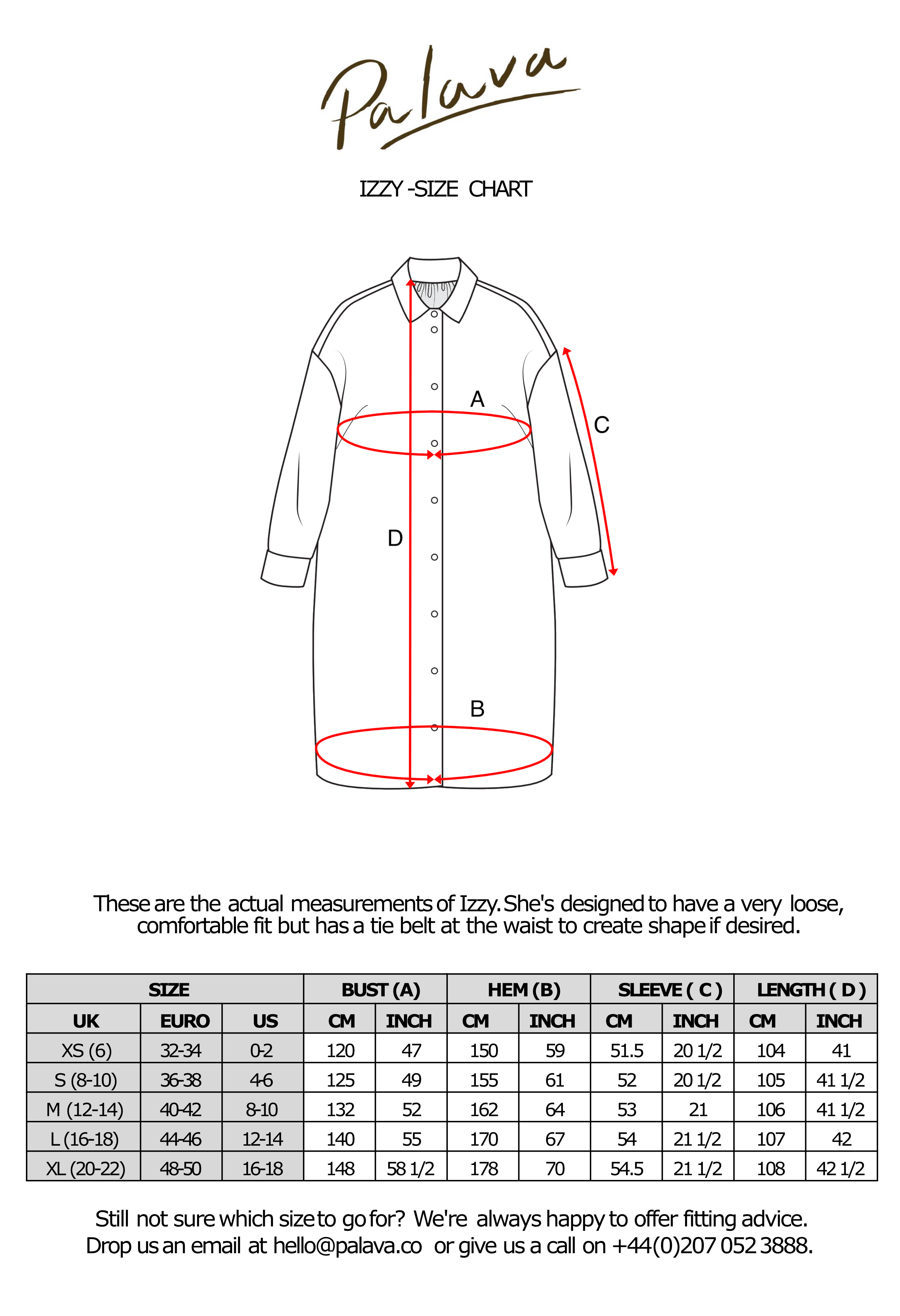 About the Style: Izzy is a loose-fitting shirt dress that can also be worn open as a lightweight coat for those cooler summer nights. All we know is Izzy will become your favourite companion for al-fresco dinner parties. All our dresses also use Corozo nut buttons - no plastic buttons round here!